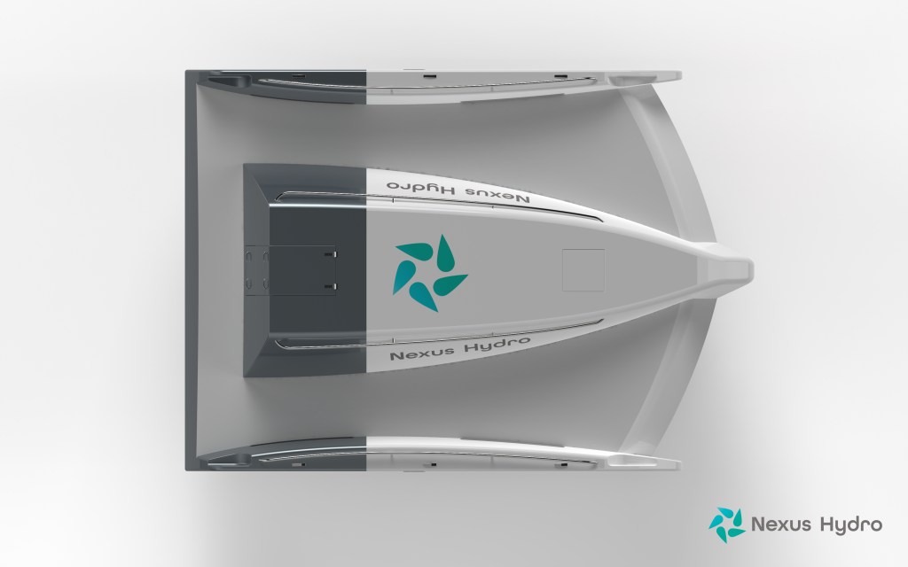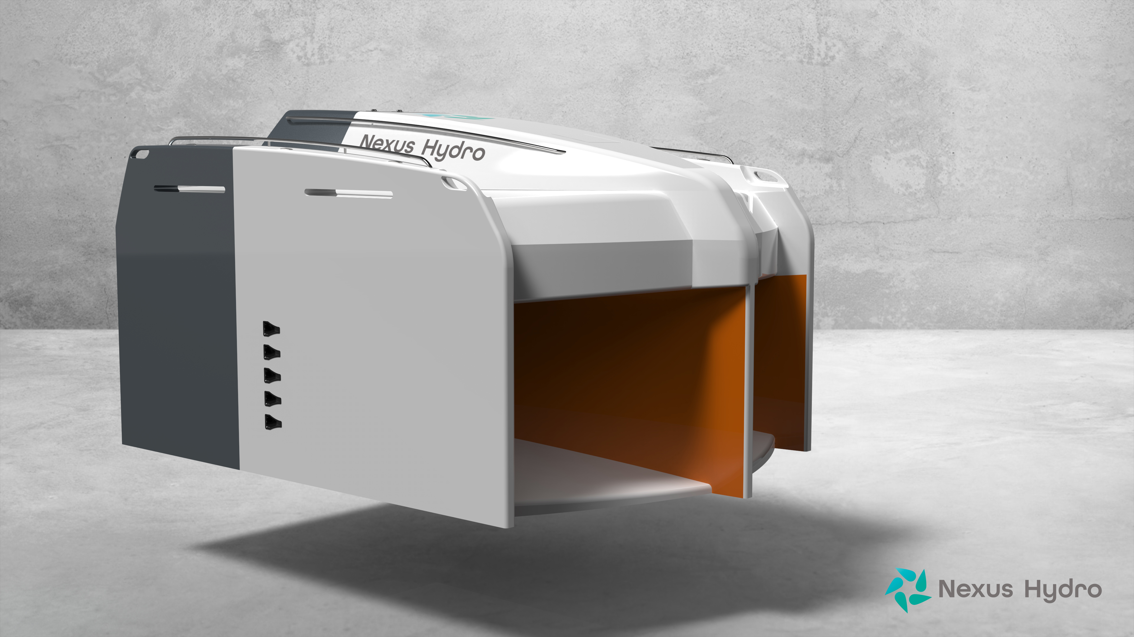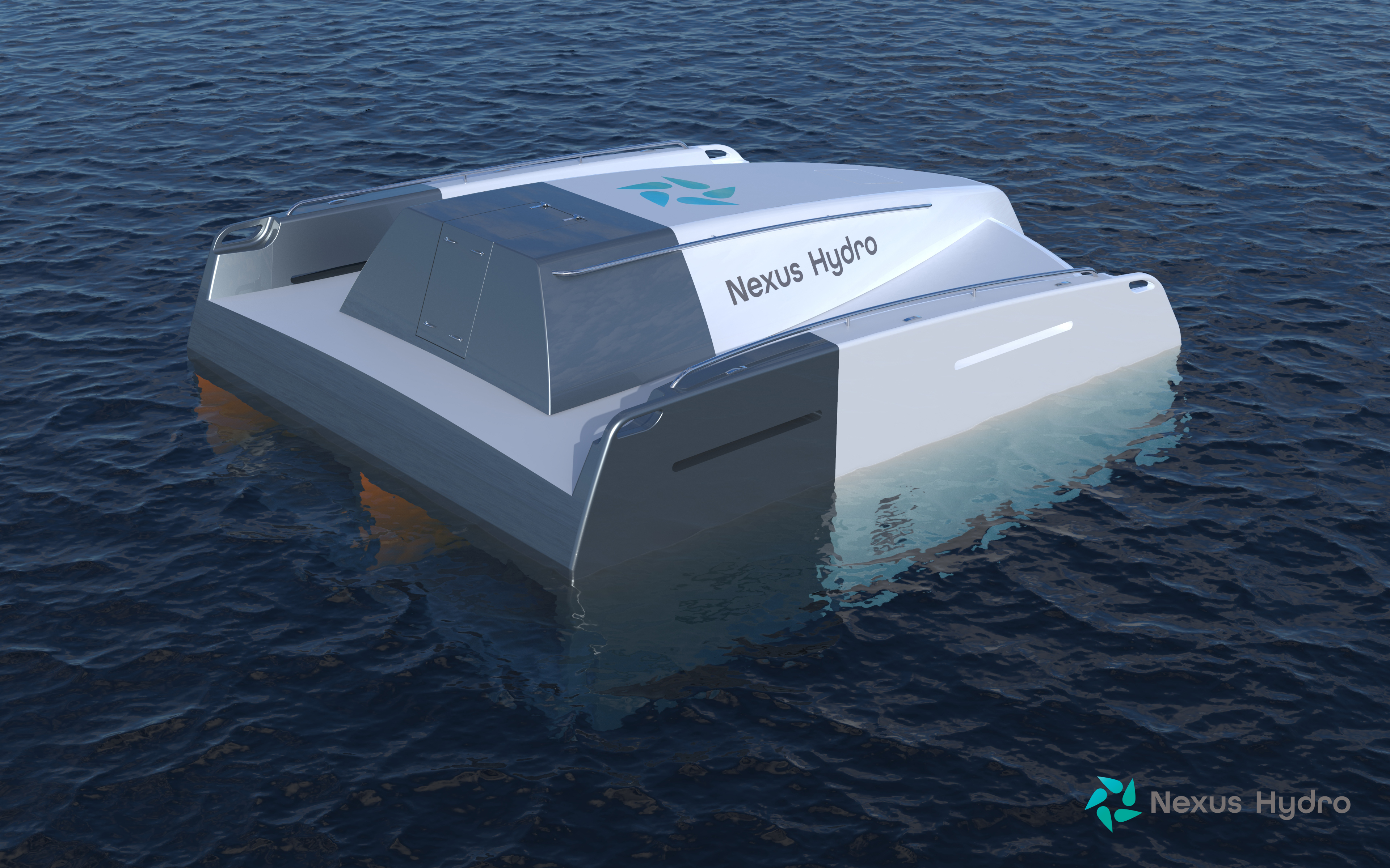 The NEXUS is an augmented turbine system. A trimaran hull houses two improved VAWTs (vertical axis water turbines); an augmenter system to increase the current velocity; and a special power generation system located above the waterline housing (placing it out of the water environment). The NEXUS Turbine will float like a barge on top of the sea, where the current is the strongest.